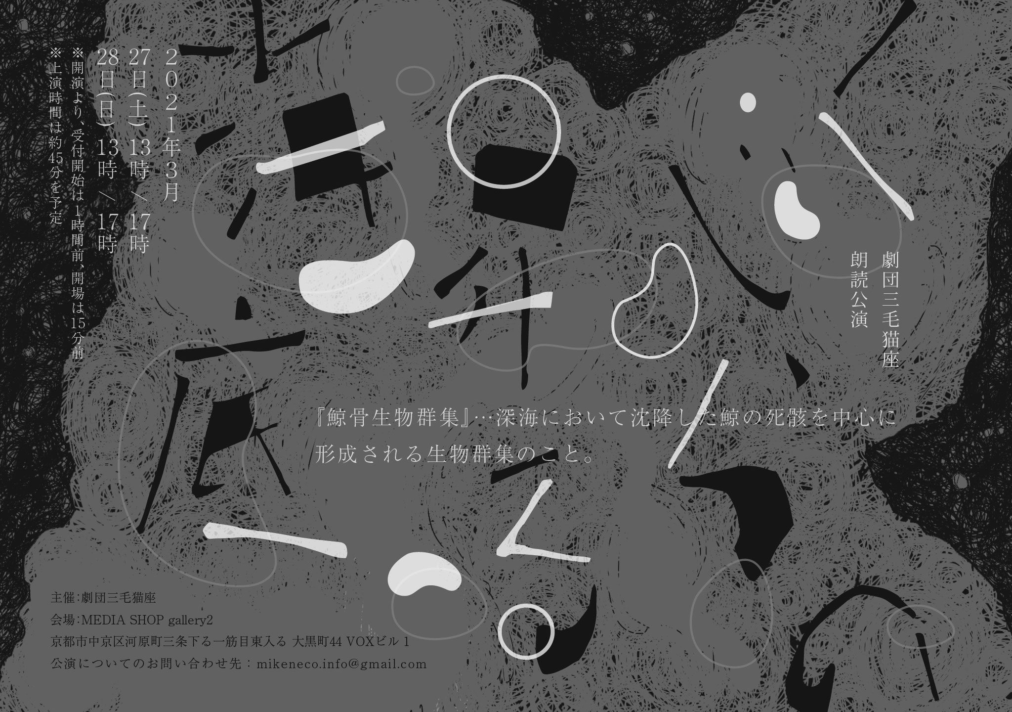 2020年にMEDIASHOP|gallery2で行った朗読作品を、THEATRE E9 KYOTOにて演劇作品として再演。